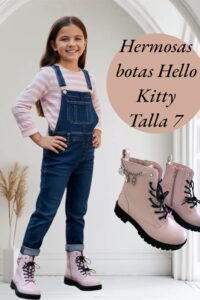 Botas rosas de cuero suaves por dentro rosas pastel con cadena de diges de hello Kitty y cierre lateral nuevas